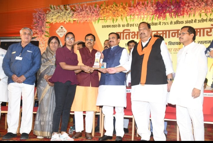रतलाम, 13 नवंबर (खबरबाबा.काम)। चेतन्य काश्यप फाउंडेशन द्वारा रविवार को बरबड़ स्थित विधायक सभागृह में प्रतिभा सम्मान समारोह आयोजित किया गया। समारोह में मुख्य अतिथि नगरीय प्रशासन एवं आवास मंत्री भूपेंद्रसिंह रहे। उन्होंने रिस्ट वाच एवं प्रतीक चिन्ह से बच्चों को सम्मानित किया। फाउंडेशन अध्यक्ष व विधायक चेतन्य काश्यप, सांसद गुमानसिंह डामोर, ग्रामीण विधायक दिलीप मकवाना, महापौर प्रहलाद पटेल, नगर निगम अध्यक्ष मनीषा शर्मा, भाजपा जिला महामंत्री प्रदीप उपाध्याय, निर्मल कटारिया, संगीता चारेल, पूर्व महापौर व समिति सलाहकार शैलेंद्र डागा मंचासीन रहे।