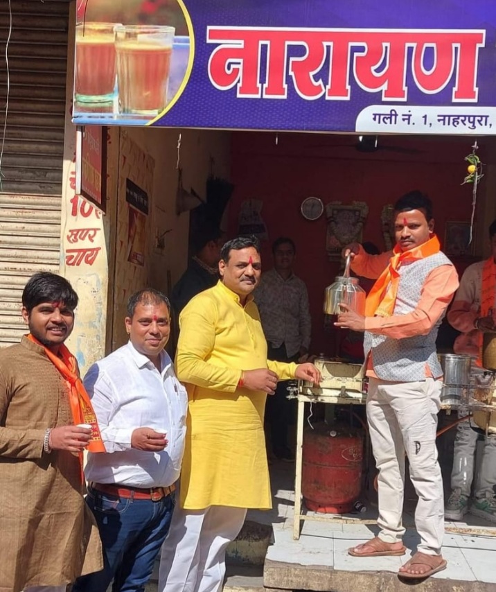 रतलाम,22जनवरी(खबरबाबा.काम)। नाहरपुरा गली न 1 नारायण टी स्टाल के संचालक नारायण भाई की भगवान राम के प्रति असीम आस्था है।दिनभर चाय बेचकर अपना गुजर बसर करने वाले नारायण भाई ने भगवान राम की प्राण प्रतिष्ठा समारोह के अवसर पर अपनी दुकान पर आने वाले सभी ग्राहको को अपनी और से केसर युक्त दूध पिला रहे है।