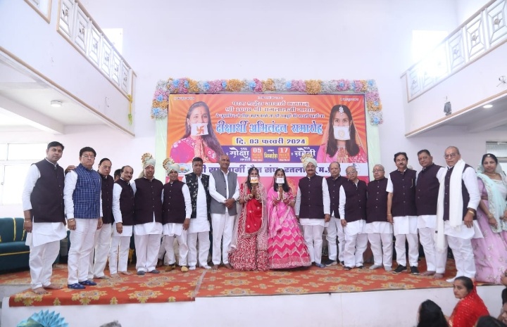 तत्पश्चात दीक्षार्थी परिवार का अभिनंदन समारोह रतलाम श्री संघ द्वारा रखा गया। स्वागत भाषण संघ अध्यक्ष सुदर्शन पिरोदिया द्वारा प्रस्तुत किया गया। मंगलाचरण की प्रस्तुति महिला मंडल अध्यक्ष किरण चंडालिया व सुधा बोहरा द्वारा दी गई। बहु मंडल की अध्यक्ष प्रीति द्वारा स्तवन प्रस्तुत किया गया। इसके पश्चात कार्यक्रम के मुख्य अतिथि राष्ट्रीय अध्यक्ष नरेंद्र गांधी, पूर्व गृह मंत्री हिम्मत कोठारी, अजीत चेलावत और कमल पिरोदिया का स्वागत समता युवा संघ के अध्यक्ष पंकज मूणत, पवन गोरेचा, बालक मंडल के अध्यक्ष ऋषभ मूणत, सचिव जय बाफना द्वारा किया गया। बालिका मंडल की अध्यक्ष इशिता चोपड़ा ,सचिव स्नेहा मूणत द्वारा नाट्य प्रस्तुति सभी बालिकाओं के साथ मिलकर दी गई। राष्ट्रीय अध्यक्ष नरेंद्र गांधी द्वारा अपने उद्बोधन मे संयम मार्ग पर चल रही बहनों को अगले जीवन के लिए शुभकामना प्रेषित करते हुए इस कठोर तप पर चलने को वीरता बताया। पूरे परिवार की अनुमोदना करते हुए श्री गांधी ने इसे शासन के प्रति कर्तव्य निष्ठा और इस कठोर राह पर चलने हेतु उनकी खूब अनुमोदना की। इस अवसर पर दोनों मुमुक्ष बहनों ने भी अपने भाव प्रस्तुत किये।