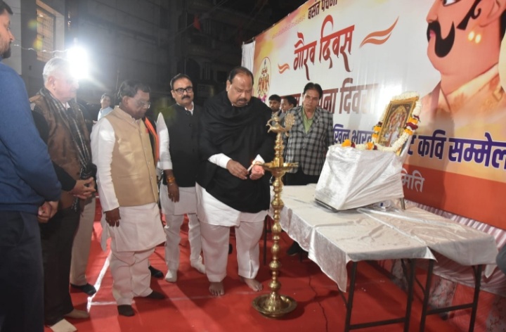 प्रतिभाओं के सम्मान के बाद अखिल भारतीय कवि सम्मेलन में कवियों ने मंच संभाला। देर रात तक चली कविताओं के दौर में वेदवृत वाजपेयी (लखनऊ-उत्तर प्रदेश) ने अभी तिरंगे के रंगो का ठीक से उडऩा बाकी है, कटे-फटे इस मानचित्र का पूरा जुडऩा बाकी है। पंजा साहेब ननकाना में शक्ति प्रदर्शन करना है। हमको भी तो हिंगलाज माता के दर्शन करना है। तिब्बत वाले बौद्ध मठों से आशीषों की आशा है। मानसरोवर का पावन जल पीने की अभीलाषा है। उक्त कविता सुनाकर दर्शकों की तालियों से खूब दाद बंटोरी। इसी प्रकार कवि धमचक मुल्तानी ने आदि शंकराचार्य नहीं होते तो चारों धाम नहीं होते राधा, राधा नहीं होती यदि घनश्याम नहीं होते, मर्यादाएं कभी भी दफन हो जाती इस देश में यदि अयोध्या में दशरथ नंदन श्रीराम नहीं होते कविता सुनाकर श्रोताओं का अभिवादन स्वीकार किया। उत्तरप्रदेश के टूंडला से आए हास्य कवि लटूरी लट्ठ ने भी मंच से श्रोताओं को खूब हंसाया। उन्होंने वो हिंदी के दम सारी दुनिया डोल लेता है। अंग्रेजी तो पऊआ पीकर भी बोल लेता है। न जाने क्यों इतनी मिठास है अपनी भाषा में। क्या बोलने से पहले मिसरी घोल लेता है, कविता सुनाकर दर्शकों का समा बांधा। मंच से अखिल भारतीय कवि अर्जुन अलहड़ (कोटा-राजस्थान), धर्मेंद्र सोलंकी (भोपाल-मध्य प्रदेश), मुकेश मोलवा (इंदौर-मध्य प्रदेश), मुकेश शाडिल्य (हरदा-मध्य प्रदेश) एवं रजनी अवनी (दिल्ली), ब्रजराज सिंह ब्रज और ने भी श्रोताओं को गुदगुदाने के साथ वर्तमान सामाजिक और राजनीति परिदृष्य से ओत-प्रोत रचनाएं सुनाई, जिन्हें खूब सराहा गया।