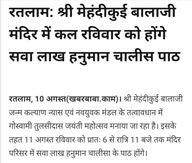 रतलाम रतलाम: श्री मेहंदीकुई बालाजी मंदिर में कल रविवार को होंगे सवा लाख हनुमान चालीस पाठ Last updated: August 10, 2024 12:00 am By indresh98kumar@gmail.comByindresh98kumar@gmail.com Share 0 Min Read |||| SHARE Share This Article Email Copy Link Print Previous Article रतलाम: बाबा महाकालेश्वर के अभिषेक के लिए भव्य निष्ठा कावड़ यात्रा उज्जैन रवाना, मार्ग में जगह-जगह हो रहा स्वागत Next Article रतलाम: 12 अगस्त सोमवार को कस्तुरबा नगर शिव हनुमान मंदिर से निकलेगी गणमुक्तेश्वर महादेव की शाही सवारी Leave a Comment Leave a Reply Cancel replyYour email address will not be published. Required fields are marked *Comment * Name * Email * Website Save my name, email, and website in this browser for the next time I comment. FacebookLikeXFollowInstagramFollowLinkedInFollowMediumFollowRSS FeedFollow Subscribe to our newsletter to get our newest articles instantly![mc4wp_form] Most Read Hello world! What Is a Recession, Really? And Should You Be Worried? The Economics of Climate Change: Can We Afford Not to Act? Will AI Take Your Job? The Economic Impact of Automation Cybersecurity Threats and How to Protect Your Data Chase the Sun and Explore Every Corner of the Earth Global Supply Chain Disruptions: Why Your Groceries Cost More Now The Rise of Augmented Reality in Everyday Life How 5G Will Transform Communication and Connectivity Your Next Adventure Begins Where the Journey Starts - Advertisement -