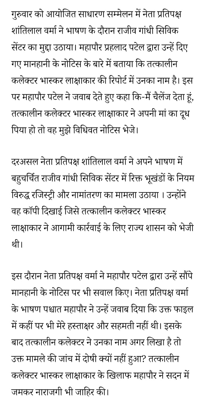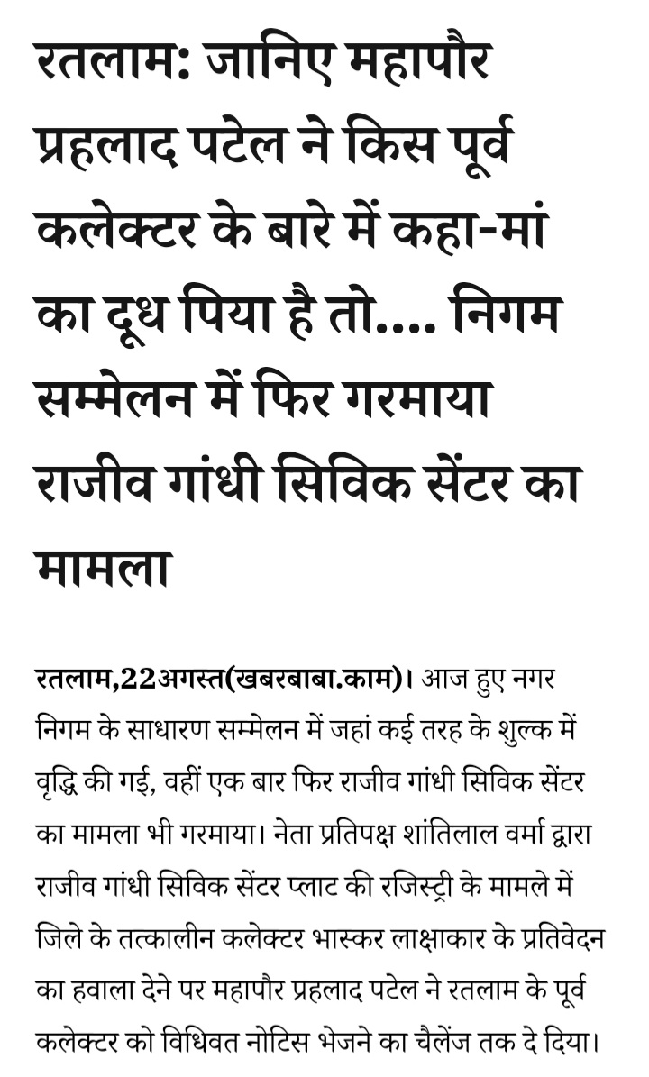 रतलाम रतलाम: जानिए महापौर प्रहलाद पटेल ने किस पूर्व कलेक्टर के बारे में कहा-मां का दूध पिया है तो…. निगम सम्मेलन में फिर गरमाया राजीव गांधी सिविक सेंटर का मामला Last updated: August 22, 2024 12:00 am By indresh98kumar@gmail.comByindresh98kumar@gmail.com Share 0 Min Read |||| SHARE Share This Article Email Copy Link Print Previous Article रतलाम: शहर की जनता पर मंहगाई की मार-सड़क पर गाड़ी पार्क करने पर 25 से लेकर 100 रुपए प्रतिदिन तक का लगेगा शुल्क….पानी, ठोस अपशिष्ट प्रबंधन के लिए भी देना होगी बढ़ी हुई राशि, संपत्तिकर और नामांतरण शुल्क में भी वृद्धि, कांग्रेस ने शुल्क वृद्धि के खिलाफ प्रदर्शन कर ज्ञापन सौंपा Next Article रतलाम: जिले में माही, मझोडिया तथा गांधी सागर जैसी महत्वाकांक्षी नल जल योजनाओं का कार्य प्रगति पर,बैठक में कलेक्टर श्री बाथम ने की समीक्षा Leave a Comment Leave a Reply Cancel replyYour email address will not be published. Required fields are marked *Comment * Name * Email * Website Save my name, email, and website in this browser for the next time I comment. FacebookLikeXFollowInstagramFollowLinkedInFollowMediumFollowRSS FeedFollow Subscribe to our newsletter to get our newest articles instantly![mc4wp_form] Most Read Hello world! What Is a Recession, Really? And Should You Be Worried? The Economics of Climate Change: Can We Afford Not to Act? Will AI Take Your Job? The Economic Impact of Automation Cybersecurity Threats and How to Protect Your Data Chase the Sun and Explore Every Corner of the Earth Global Supply Chain Disruptions: Why Your Groceries Cost More Now The Rise of Augmented Reality in Everyday Life How 5G Will Transform Communication and Connectivity Your Next Adventure Begins Where the Journey Starts - Advertisement -