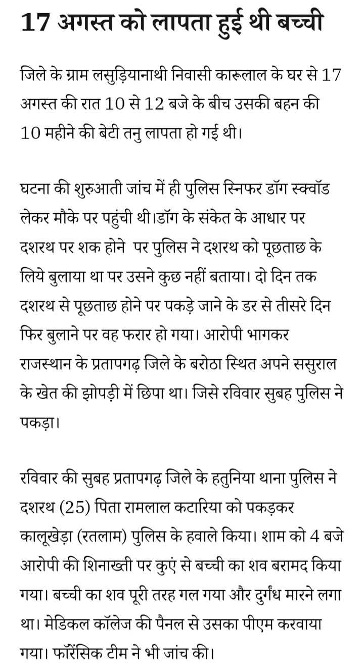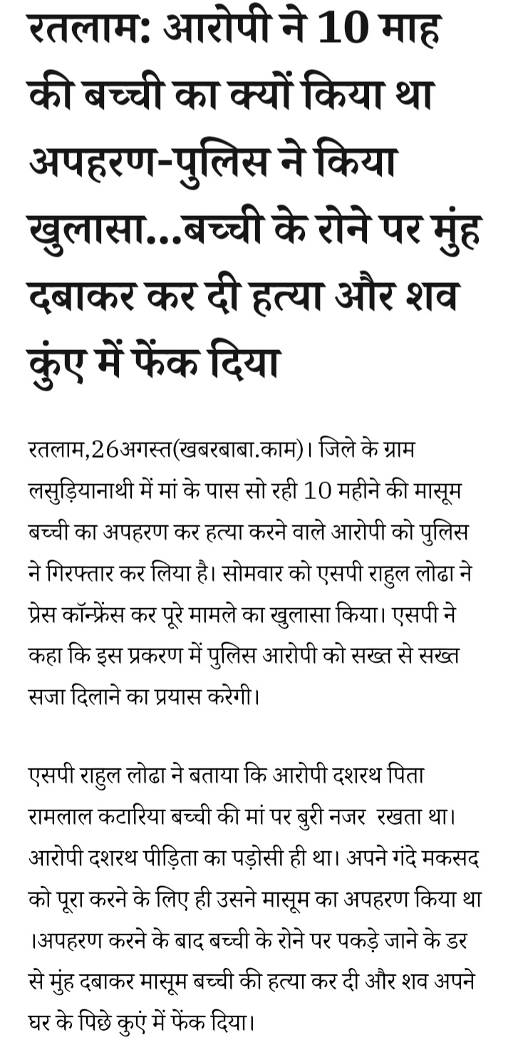 रतलाम: आरोपी ने 10 माह की बच्ची का क्यों किया था अपहरण-पुलिस ने किया खुलासा…बच्ची के रोने पर मुंह दबाकर कर दी हत्या और शव कुंए में फेंक दिया